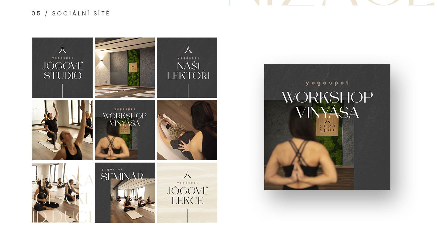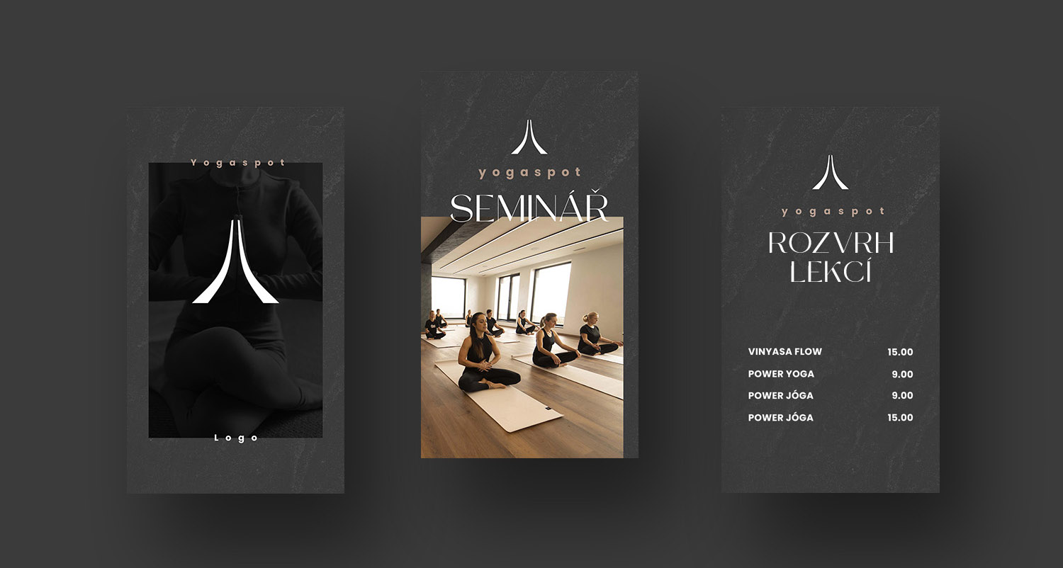 Zakladatelka nově vznikajícího jógového studia Yogaspot mě oslovila s požadavkem vytvořit kompletní novou vizuální tvář značky. Cílem bylo vytvořit identitu, která bude působit harmonicky, klidně a přirozeně, v souladu s filozofií jógy i atmosférou samotného studia. Při tvorbě jsem vycházel z již hotového interiéru studia, který se stal hlavním zdrojem inspirace. Kombinace přírodních materiálů, dřeva, kamene a zemitých tónů se promítla do návrhu loga, barevné palety a textur, které tvoří základ celé vizuální identity. Součástí projektu bylo také vytvoření šablon pro Canvu, aby si klientka mohla snadno a jednotně spravovat obsah na sociálních sítích a udržet tak konzistentní vizuální styl. Výsledkem je klidná, vyvážená a moderní identita, která odráží energii i filozofii studia Yogaspot a přirozeně zapadá do jeho prostředí.